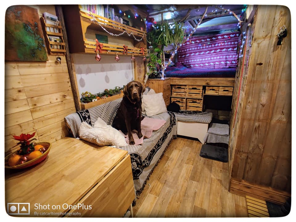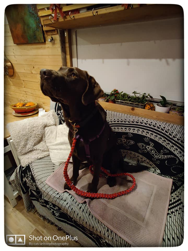 Parked on a campsite in Netherlands as I (Cat) have had a bad back for a few days and not up to driving but still enjoying the beautiful walks in the forest. Decided to get into the Christmas spirit with the few decorations we got at Aldi here in the Netherlands 🇳🇱. Made Rolo a new dog lead out of paracord after his fiasco yesterday of chewing through his old one. Good old Paracord, we have two new leads 🙂