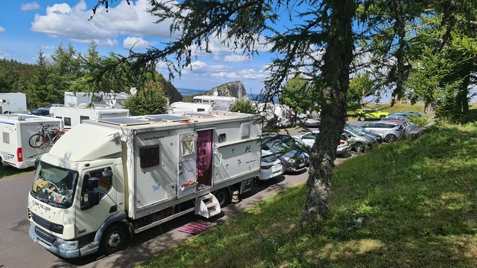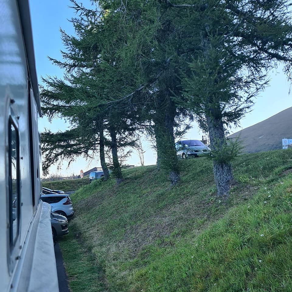 Tour de France …eeek! Last night it was difficult to find parking as the cyclist pass here today. We didn't realise. Motorhomes parked up all along the route of the road up here. We found a small spot by the lake but had to move as we had no reception for work. Got up early and parked up in a car park alongside so many motorhomes! Beautiful views and outside the door we see the finishing line for this stage. Going to be an interesting day π²ππ«πΎπ