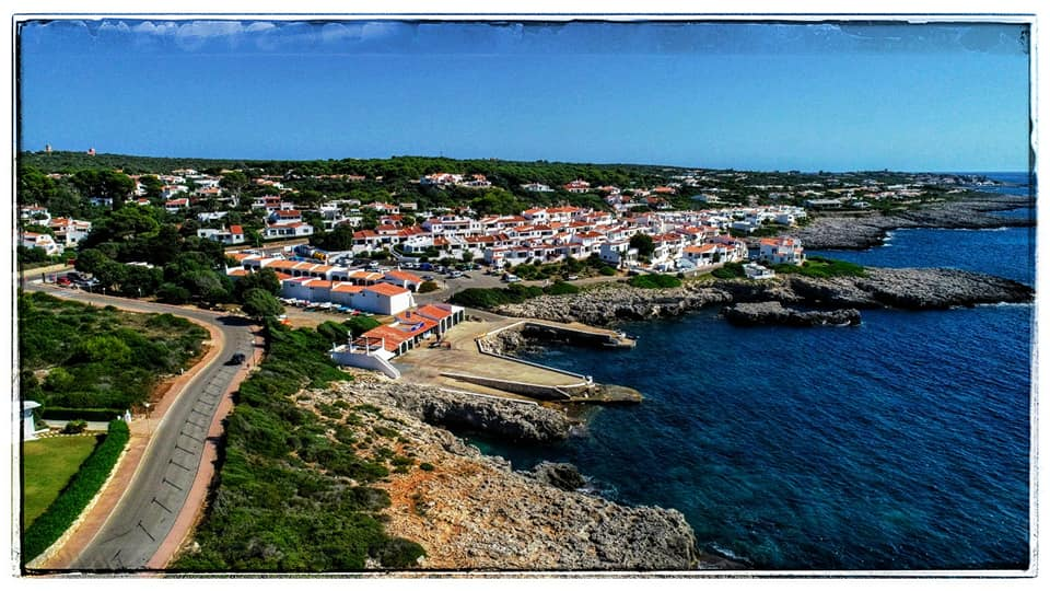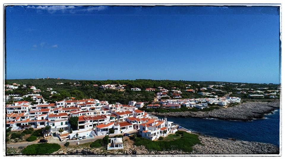 Some drone footage from Binibecca. The beach and it's clear blue water is beautiful! Views of Cala Torret and @binibeccadiving on the quay.