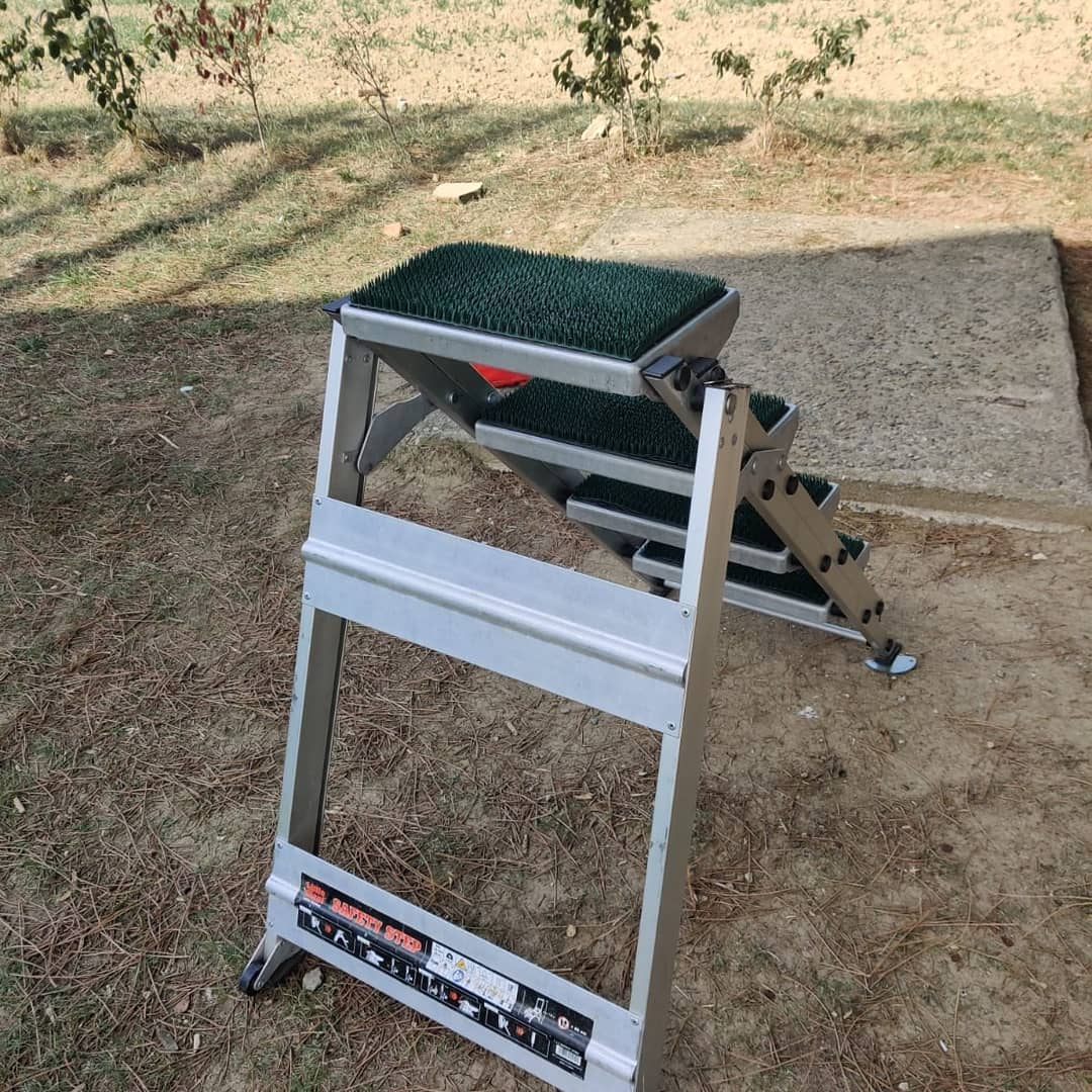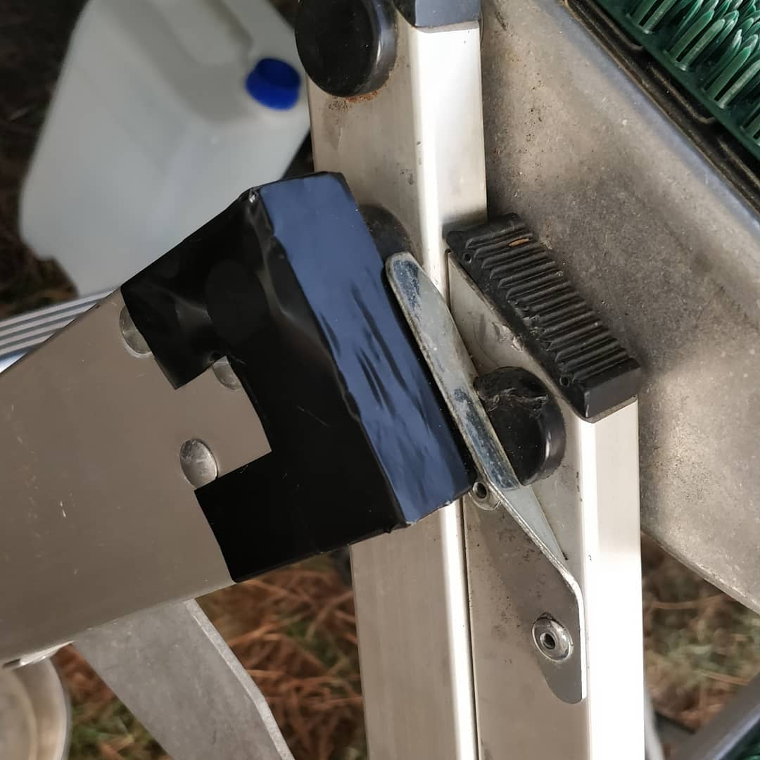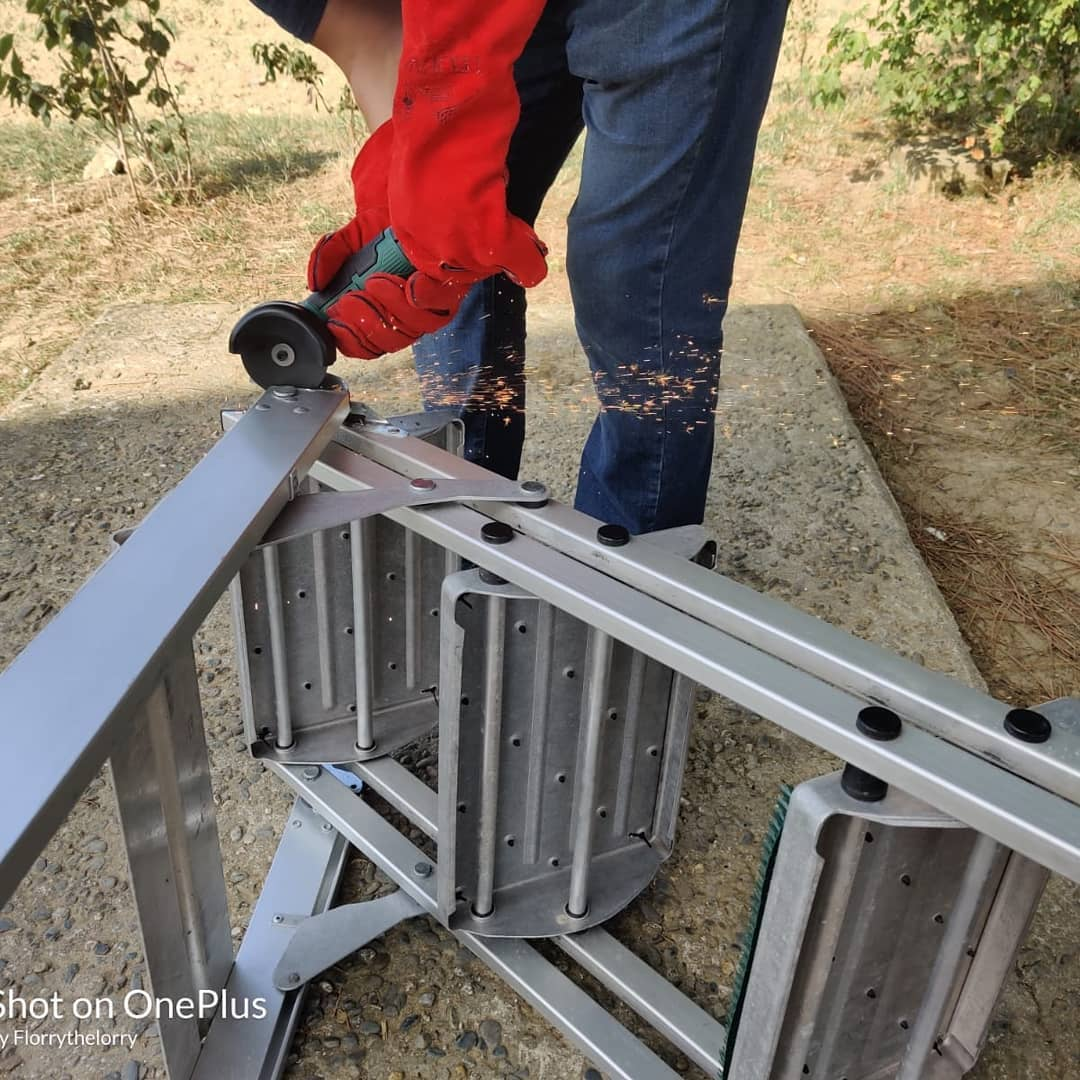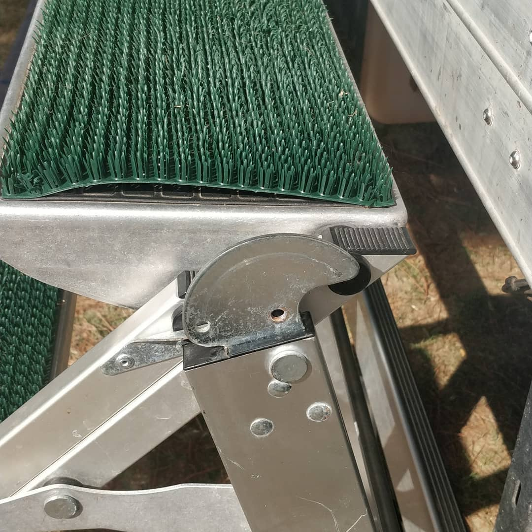 Time for a bit of surgery on the steps! Everyone @lorrylifedog goes in or out he gets his lead tangled on these bits, today I found a battery operated angle grinder in #lidl which is awesome…. Now he won't get tangled up and whine! Thanks to @have_motorhome_will_travel - who showed us their steps and we bought the sales ones #littlegiantladder