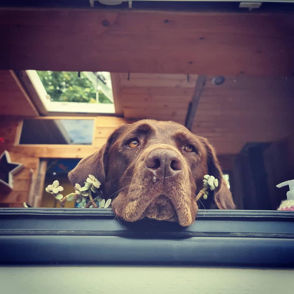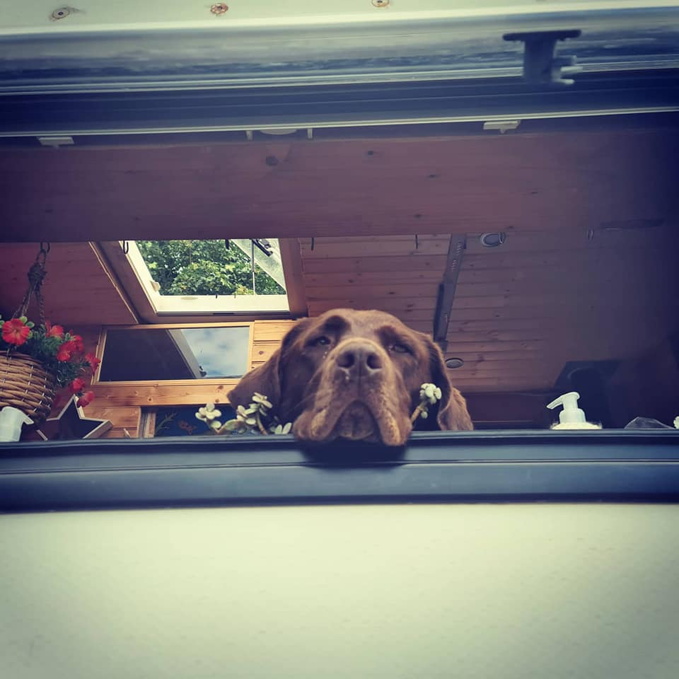 Doesn't he look sad ?After a trip around all the nearest HGV garages still no part and I came home to Rolo looking sadly at me. We have ordered the part we need and it should be with us by Thursday π€π€π€ Lucky we are parked up here on a nice aire waiting for the part to arrive. Rolo however, seems to want a new garden to explore π€£π«ππΎπ