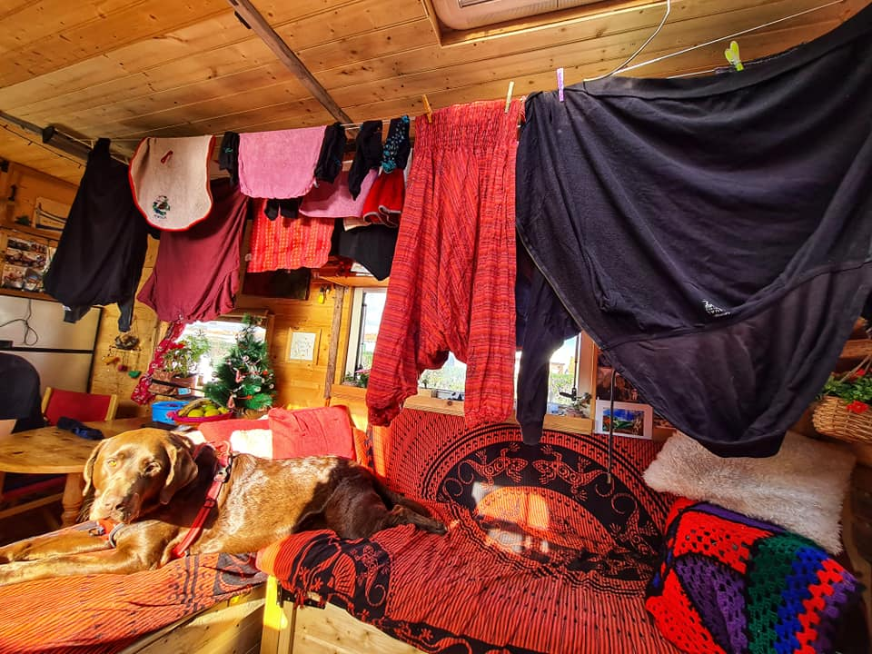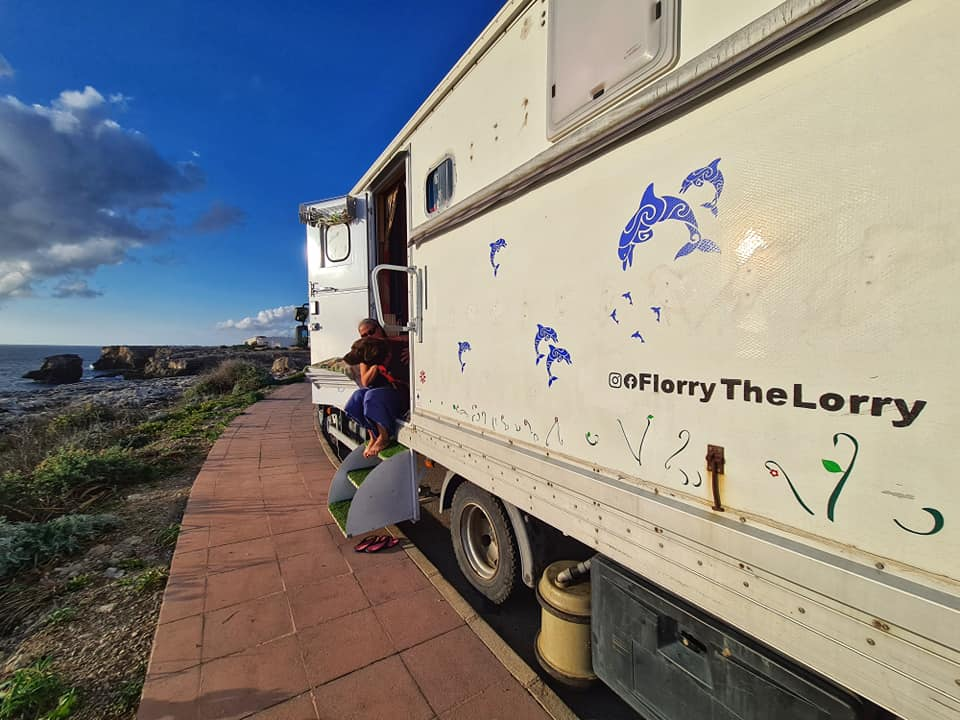 A relaxed day today. Visiting a friend who kindly let me do a wash at her home. In winter all the launderettes are closed here and only one open in the centre of Mahon. Our little twin tub struggles as we now have a full wash due to winter clothing. We have a new pull out washing line which is great as it's long and out of the way up high so we still can walk around in the lorry. All our washing should be dry by tonight with the wood burner roaring. I do feel very at home here in Binibecca. It must be my happy childhood memories I have of summers here as a child. Feeling very peaceful and grateful to have nature on my doorstep and to be watching the sunsetting and listening to the gentle crashing waves. Lorry life and travelling full time has its ups and downs and today is an up. 🥰 Happy Friday and Stay Safe 🙏😘🤗🚛👫🐾 🌅 #florrythelorry #menorca