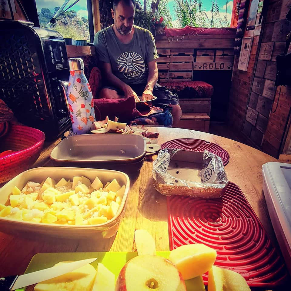 Sunday roast in the lorry at Cala'n Porter. We can only do this when we have a park up like this and not parked up on the roadside π a motorhome life means meeting many. This morning we met a lovely couple, Sharon and Juan. Lovely to meet you both π Chicken, roast spuds, carrots, brocli, cauliflower cheese and Yorkshire puddings, followed by home made apple crumble and custard was made for lunch. Tidied up in the morning but it soon got messy again. I think we used every utensil, plate and pans we've got in the lorry. There were 5 of us and got to eat outside in the warm sunshine. I love to share lorrylife with friends and family so they can be part of our life tooππΎππ«ππβ€οΈπβ€οΈπβ€οΈ lots of washing up afterwards π