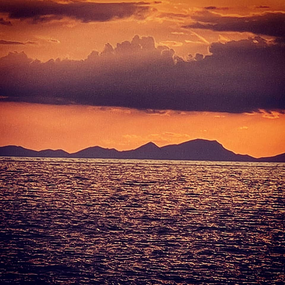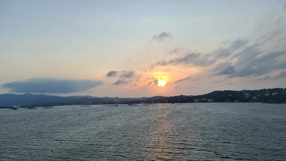 As promised a few photos from today. Check out Mallorca mountains in the distance in the sunset. I had forgotten how beautiful the sunsets are here and that on a clear night you see all the way across to Mallorca. Rolo has had a swim and now shattered! So happy to be back. Stay safe everyone ππ«ππΎπβ€οΈπβ€οΈ