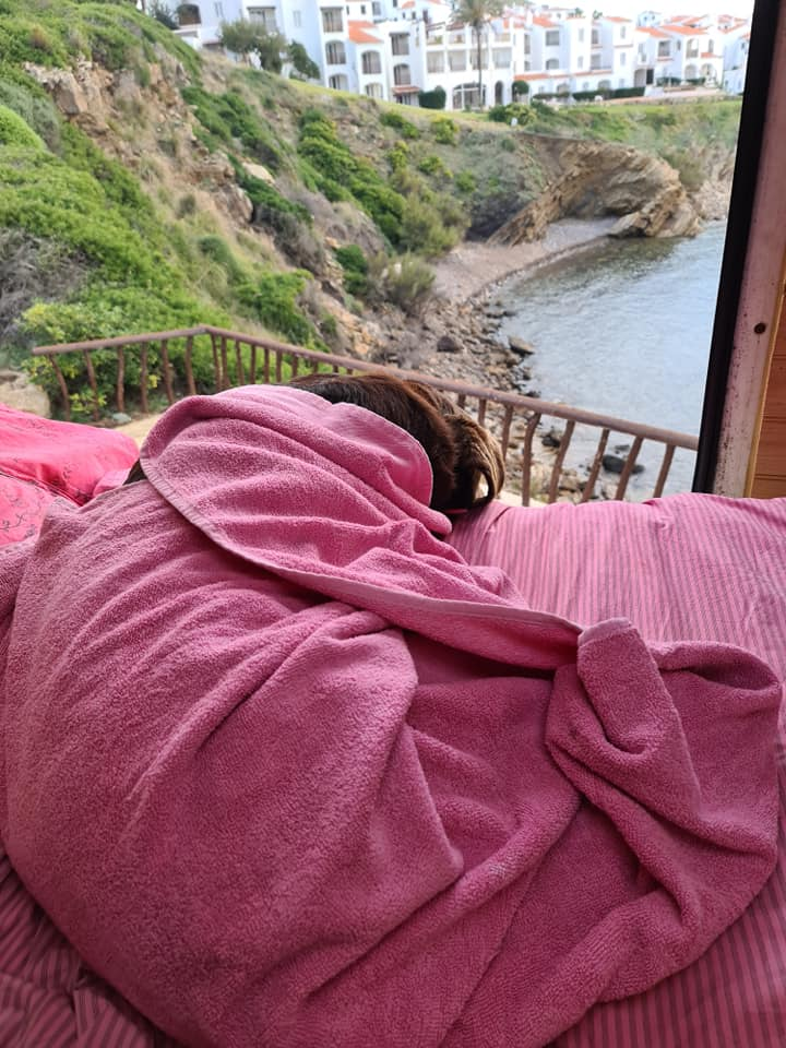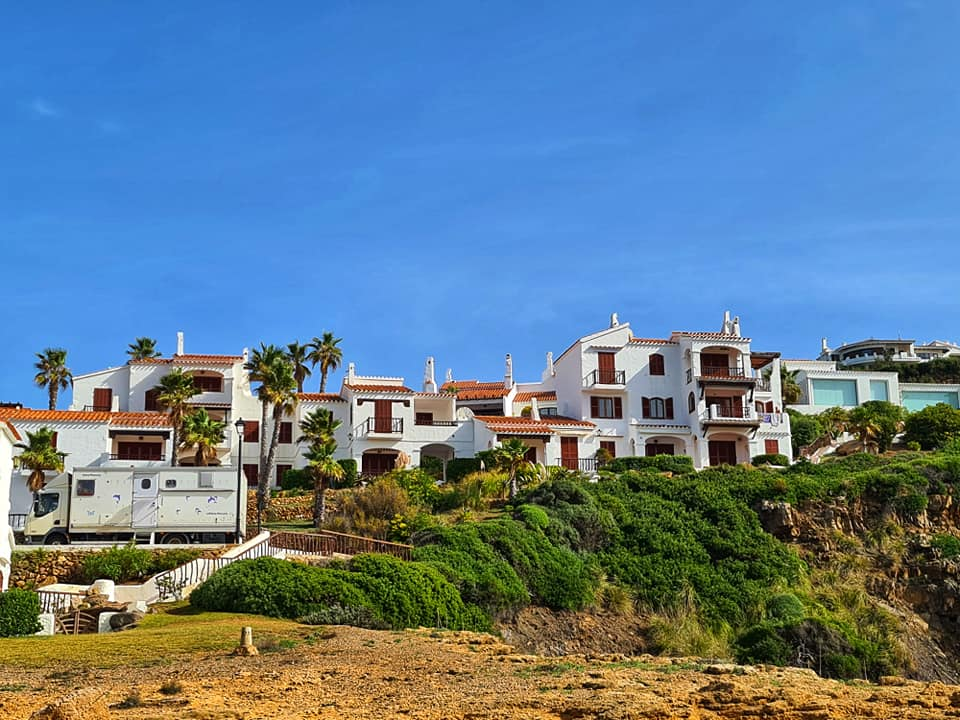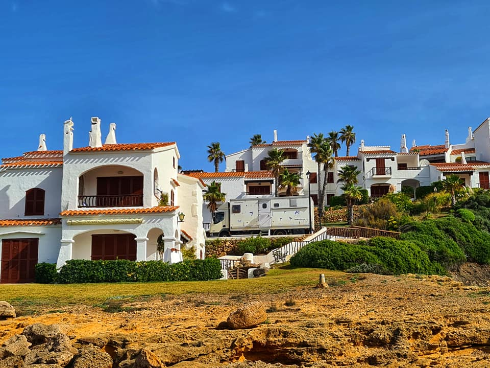 Can you spot Florry in some of the pics? She fits in perfectly with all the white washed villas and apartments. After spending a night in Es Mercadal to top up with water, catch up with a friend Minerva, and have a little clean out we ended up North again. Got a lovely gift of the throw on our bed from Menorca Infinita a beautiful shop in Es Mercadal (link below) This time we are at Platges, Fornells and not the harbour. Lovely park up which we wouldn't usually park at but due to covid and no tourism most the apartments are all closed up for winter so we are not blocking anyone's views. We met up with a couple of our followers which was lovely. Thank you Nicole and Chris for the lovely apples and great company. Rolo is loving his new back garden he has to himself. Usually there is fab sunsets this side but sadly not tonight. Stay safe everyone ππ«ππΎ #