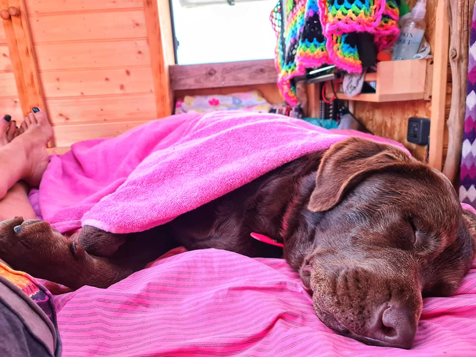 Rolo is shattered after a busy day of being fussed over and lots of swimming
