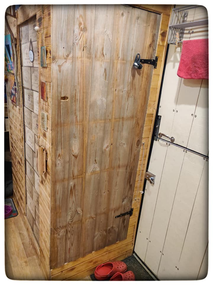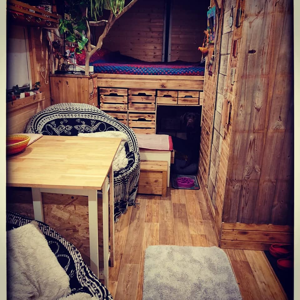 We still haven't fixed the lights yet as it was a bit misty and cold. Instead we built new shelves with recycled bits of wood for inside our cupboard. No more digging around to find hats and gloves. Also had a big clean out. Every time we discuss maybe doing something with Rolos space he decides to go in there claiming his space! Pampered pooch! πππ« Hopefully we can get the lights fixed this weekend and back to MOT for Monday ππππ Finished the day off with a lovely long walk with his majesty Rolo πΎπΎπΎ