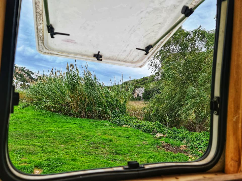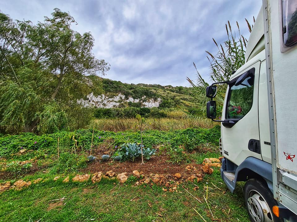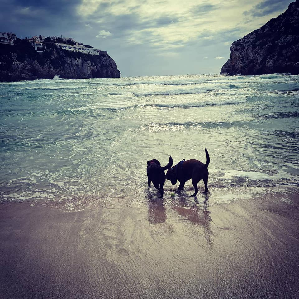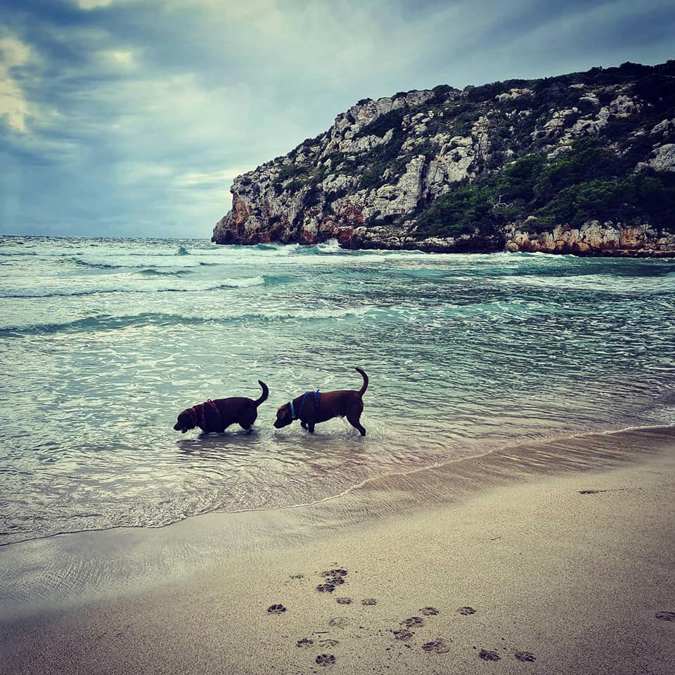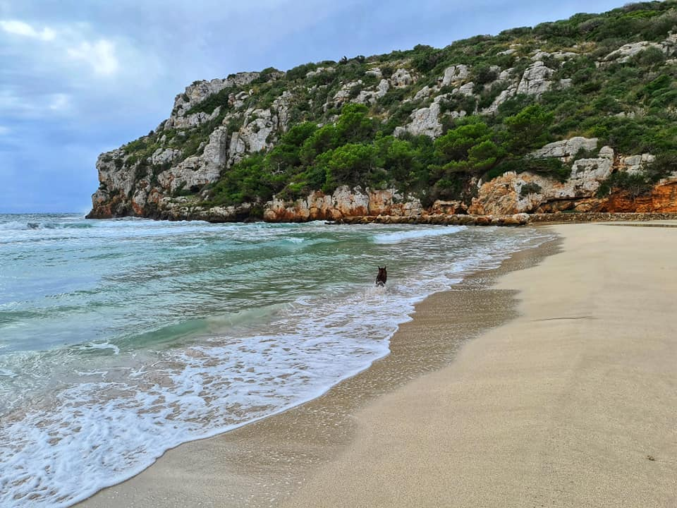 Any one see the resemblance to Lulworth Cove? We are parked in the car park now in C'alan Porter some nice views still but not sea view this time. Rolo got to meet Barnie another lovely gentle choc lab π who he had fun with at the beach with today. Cala En Porter Porter is located in Alaior South coast south. There are limestone cliffs on both sides. One side is more developed with villas, homes, restaurants and bars. There is also the Cova de en Xoroi a nightclub in the caves. The other side completely undeveloped with nice walks. What's so lovely is apparently some one else who lives in his motorhome was parked right where we were and stayed put for a few months over summer. He grew a little Vege patch here for others to enjoy. Will try a tomato π or two tomorrow ππ«ππΎ Happy Monday all and stay safe πππ«ππΎπ