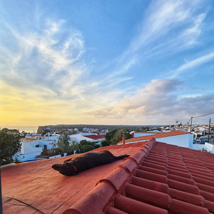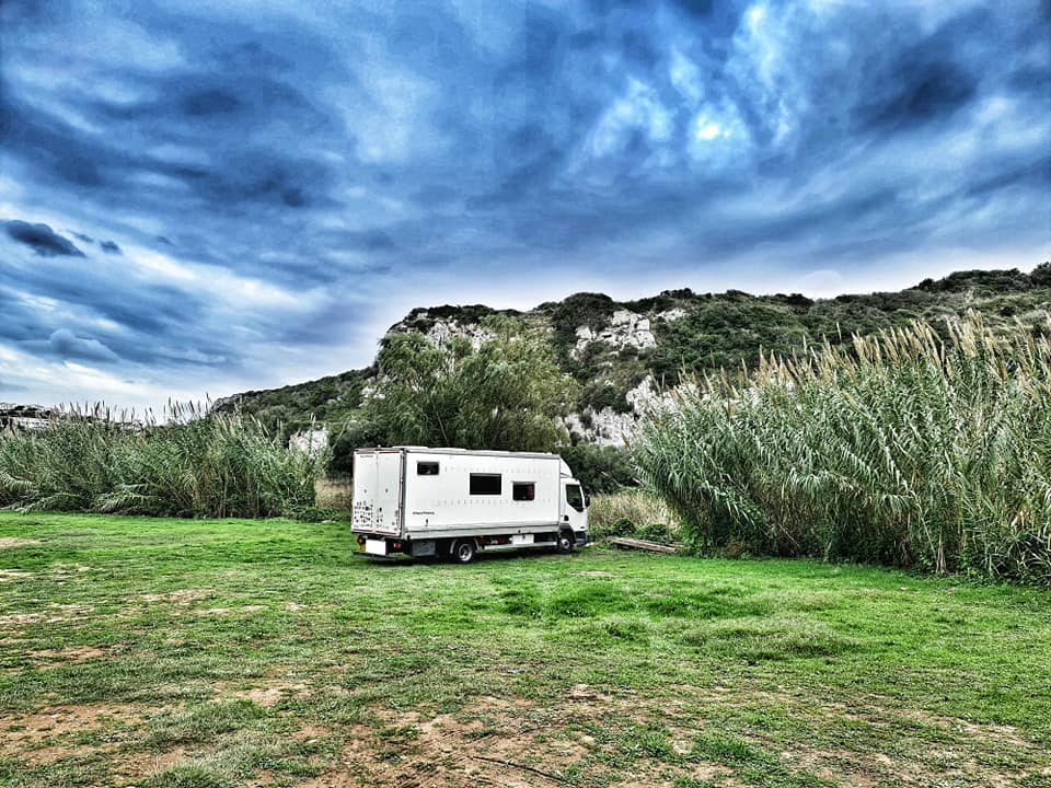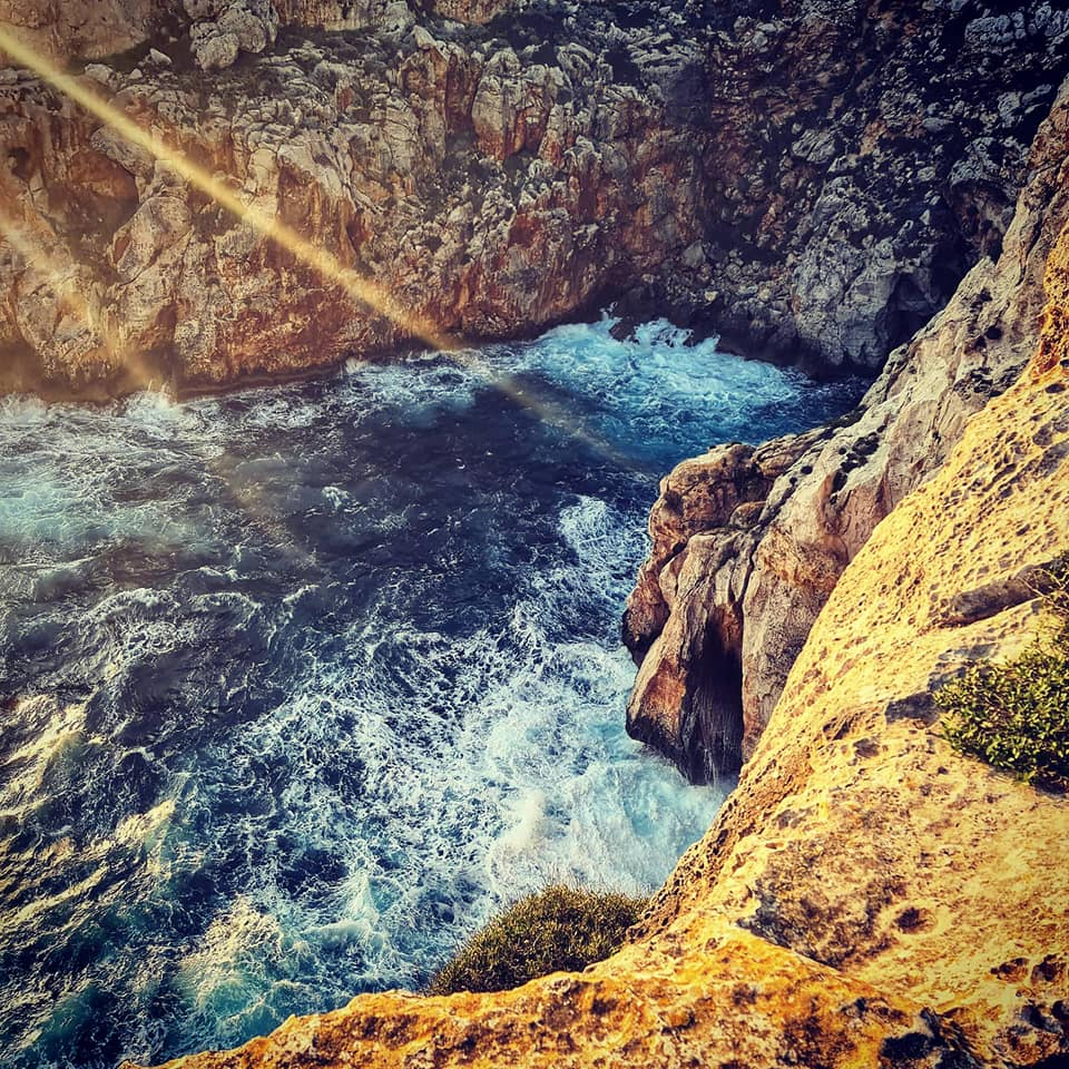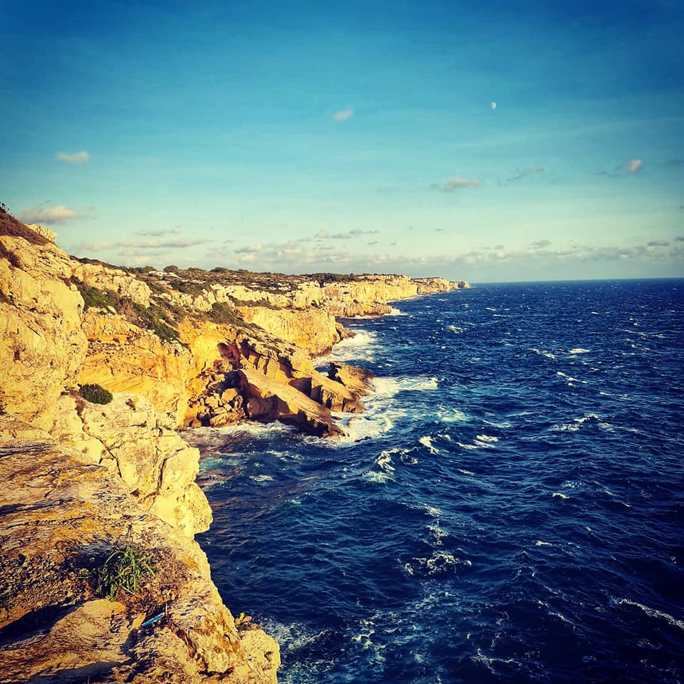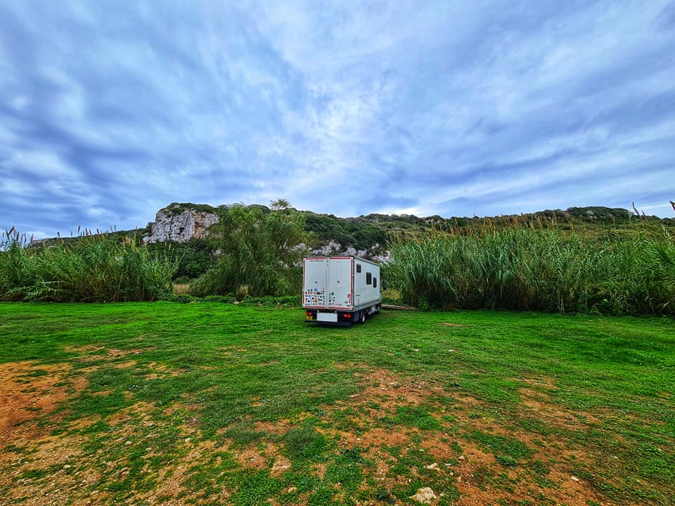 Any one see the resemblance to Lulworth Cove? We are parked in the car park now in C'alan Porter some nice views still but not sea view this time. Rolo got to meet Barnie another lovely gentle choc lab π who he had fun with at the beach with today. Cala En Porter Porter is located in Alaior South coast south. There are limestone cliffs on both sides. One side is more developed with villas, homes, restaurants and bars. There is also the Cova de en Xoroi a nightclub in the caves. The other side completely undeveloped with nice walks. What's so lovely is apparently some one else who lives in his motorhome was parked right where we were and stayed put for a few months over summer. He grew a little Vege patch here for others to enjoy. Will try a tomato π or two tomorrow ππ«ππΎ Happy Monday all and stay safe πππ«ππΎπ