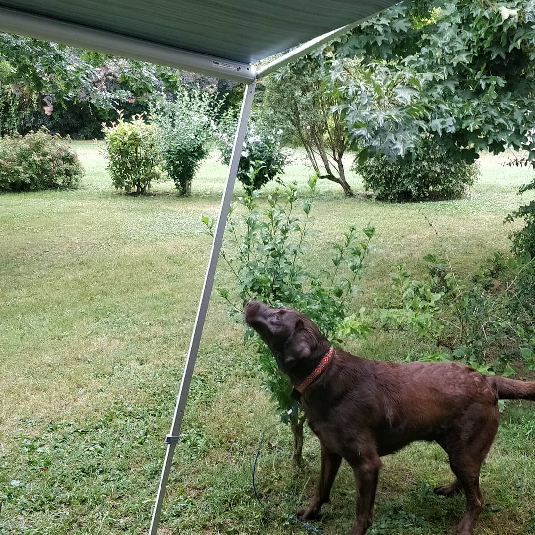 @lorrylifedog is enjoying the rain coming off the awning! It reminds me that I want to do a rainwater collection system like @the_lorrylife !
