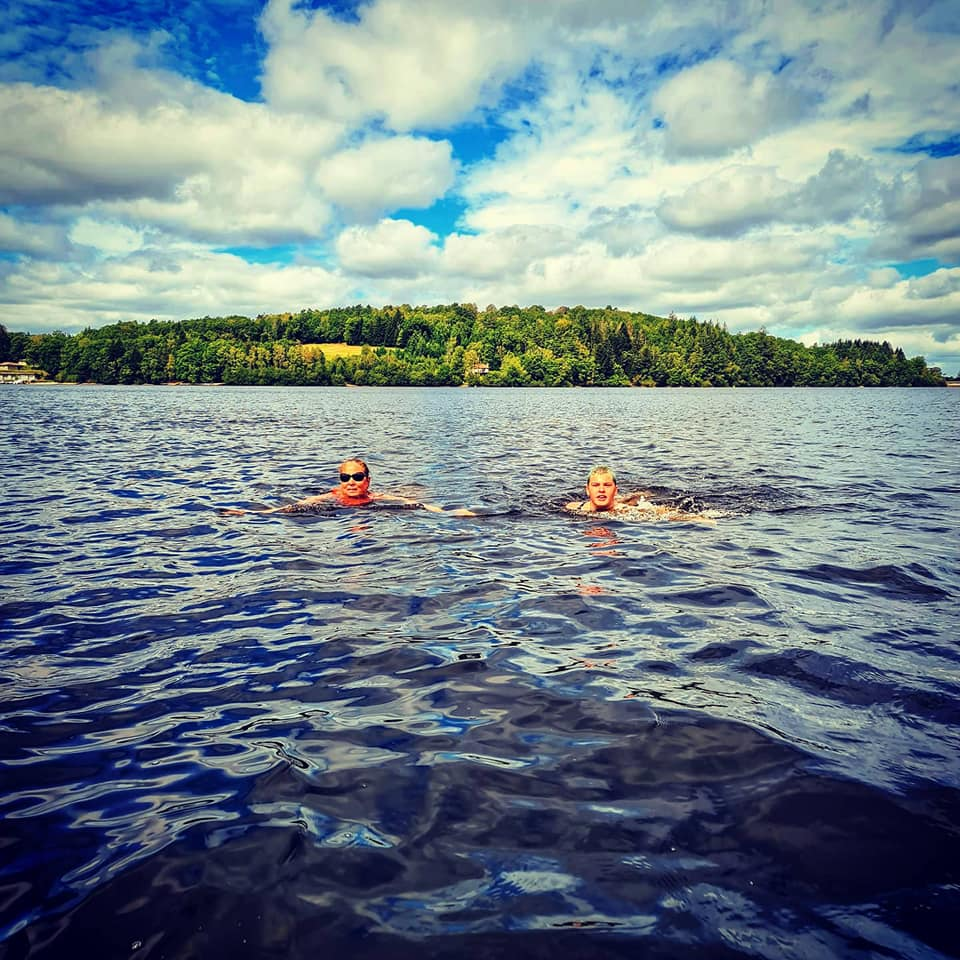 A great family day out today. We visited the the lac de Vassivière one of France's largest artificial lakes of about 10 square kilometres. It is situated on the Plateau de Millevaches in the , Creuse, Limousin. We hired a kayak and pedalo and took turns on the two or else in the water swimming. Lots of fun, laughter and giggles were had ❣️ There's an official campsite there and also lots of parking around the lake where there are motorhomes parked up. Very quiet here and still no sign of an English camper. 👫🐾🚛🙏