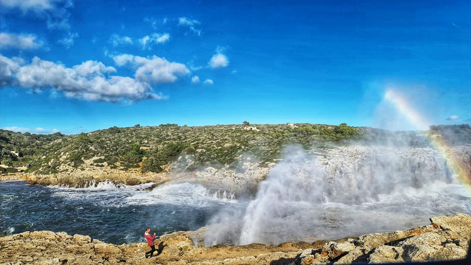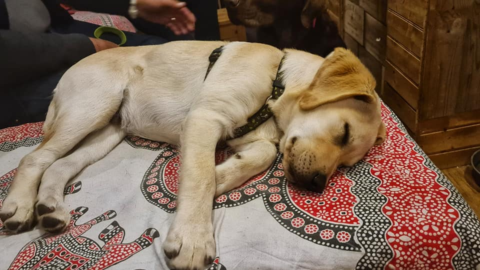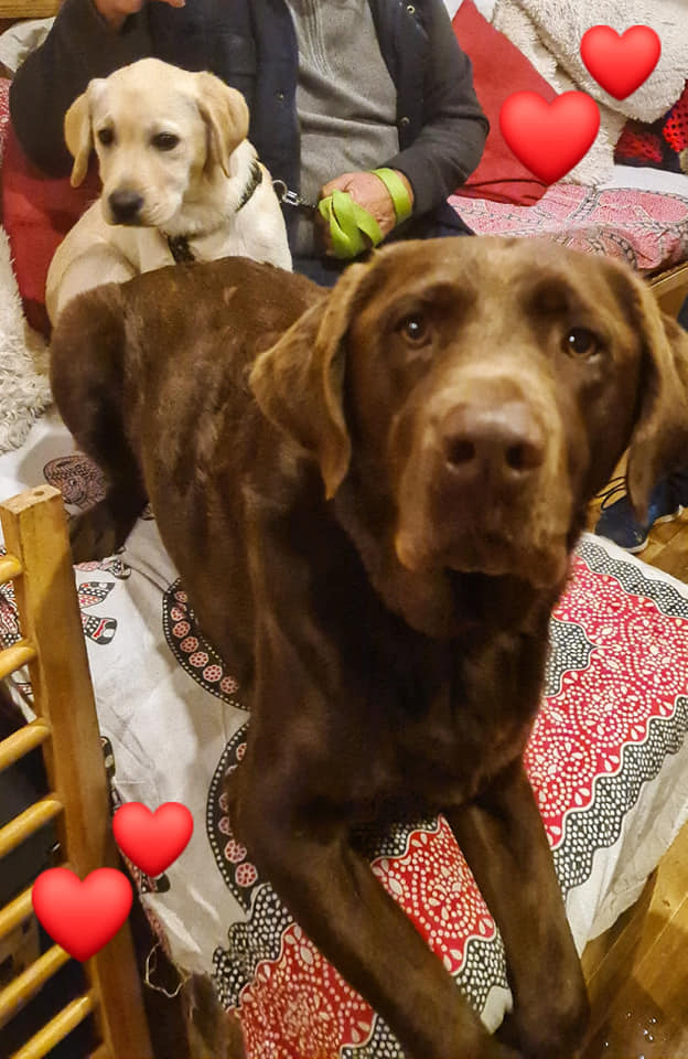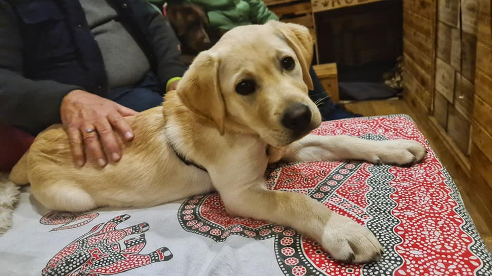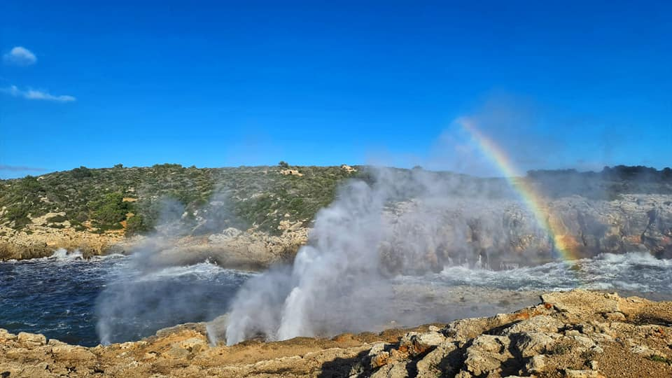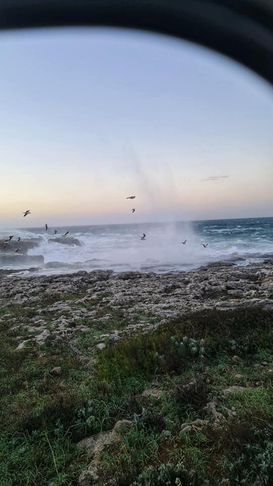 Another lovely day. Amazing roaring angry seas to be filmed. We visited Bindali to see a blow hole that is only seen when there is a South West wind which they have today. Thanks Werner Lutz for telling us about it, it was great π Later got back to visitors for tea. Tina, Brian and their gorgeous 4 month old lab, Murray and Monty the Bichon. Rolo had never met a lab pup before and he wasn't too sure but soon settled and let the pup have a sleep by the fire. So cute! Still blowing a gale but supposed to ease my tomorrow. Happy Monday and stay safe and warm ππΎπΎπΎπ«πππΎπΎ