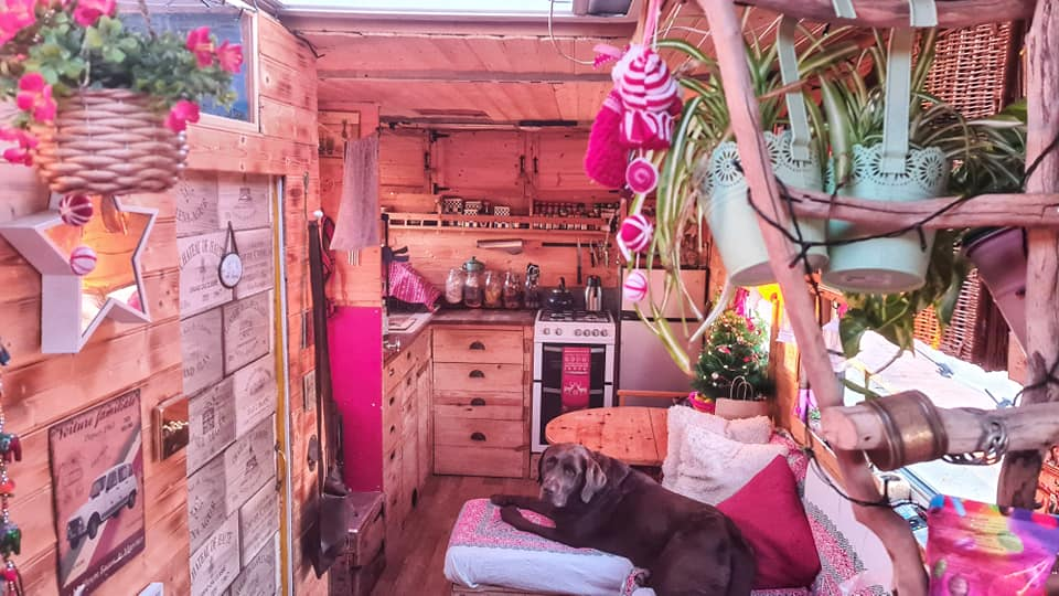 Sunset out the kitchen window. All windows and the Lorry are covered in salt right now. Too windy to go out and get on a step to clean it.
