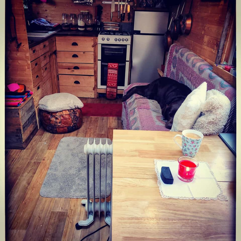 Chris has been trying to sort out the electrical problem with the lights outside to pass the MOT, not proving to be too easy. Meanwhile I played dolls house and moving things around again inside. Put the sofa back in swapped the table to other side of van. Will try out this configuration for a bit. Think we have definitely decided against the moon chairs. Rolo loves having his sofa back πΎπ«π Fingers crossed we can get Florrys electrics sorted and get her back on the road soon π€π