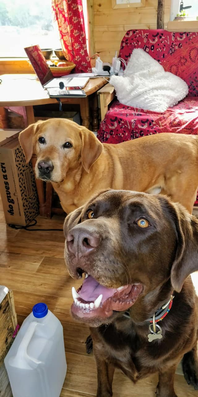 Who else loves a visitor ? We are loving having a beautiful fox Red lab visiting us everyday here in Kent. Rolo loves him and welcomes him in but Rolo has to have the sofa. They also like to keep Chris company while hard at work. Meet Gunnaigh, Rolos best friend right nowππ«ππΎπΎπΎ