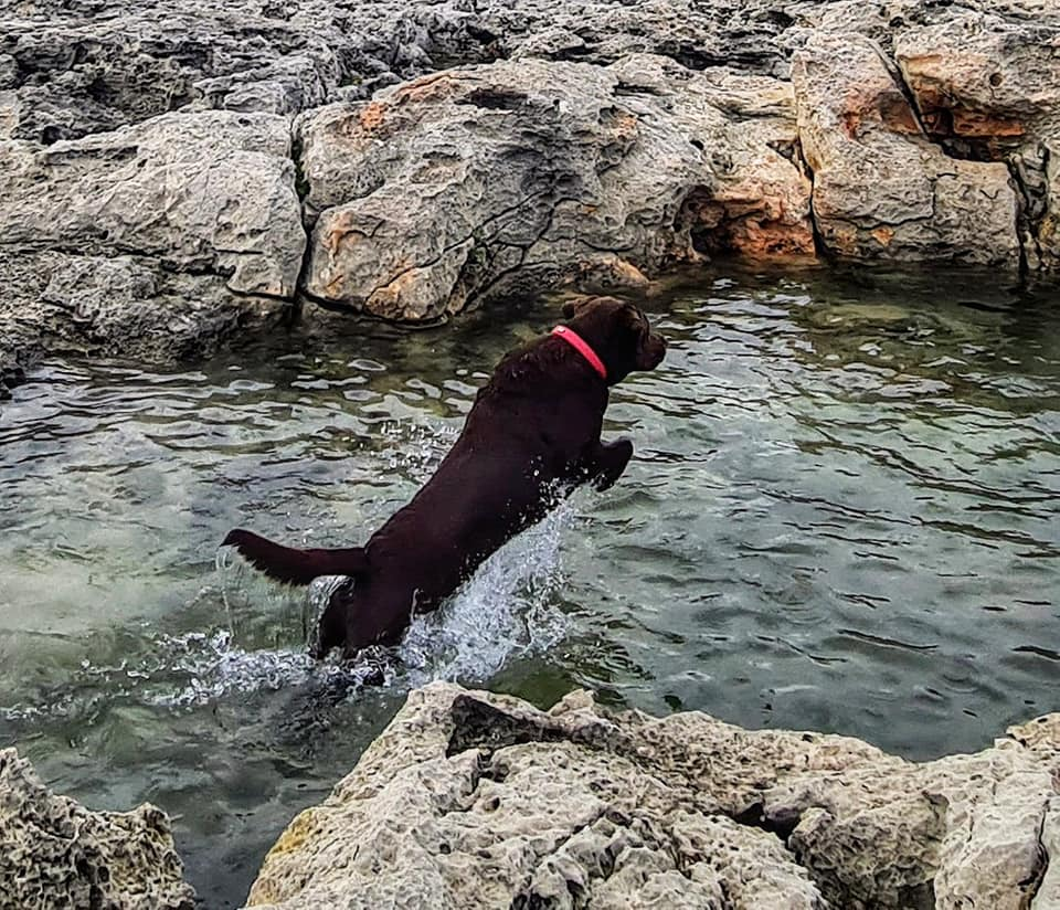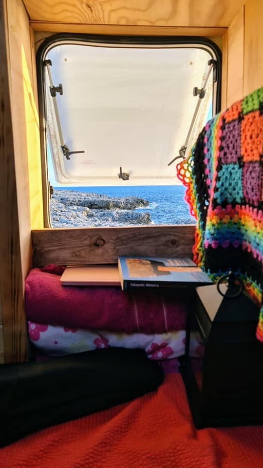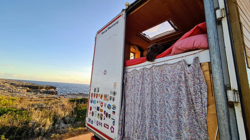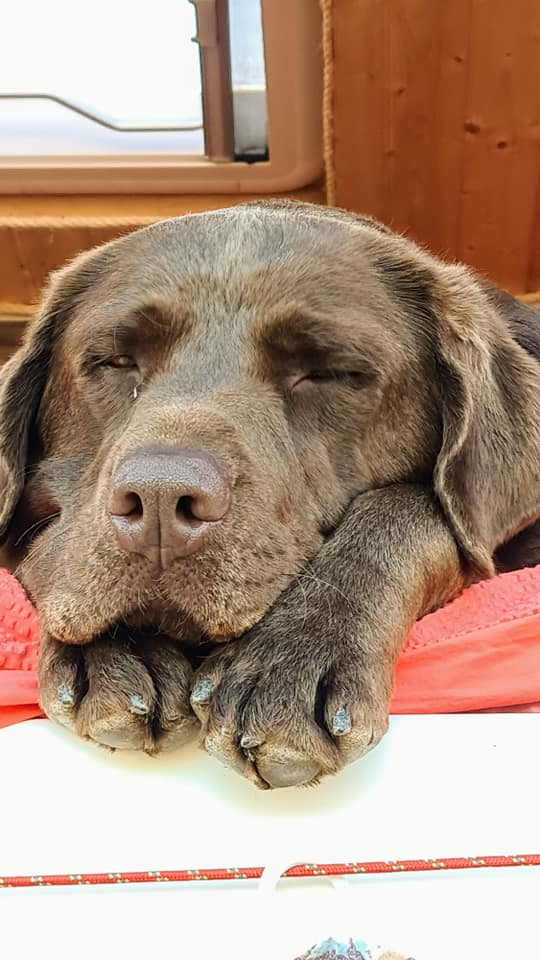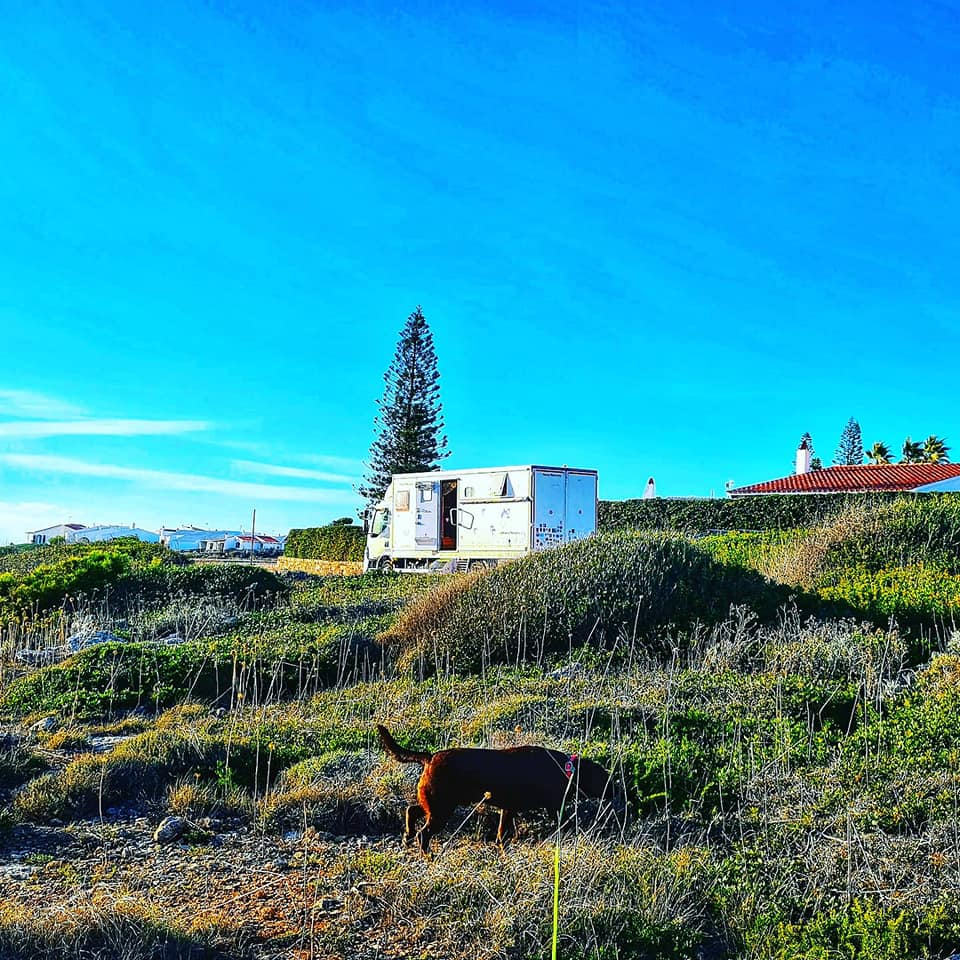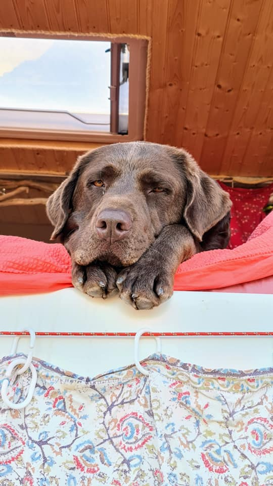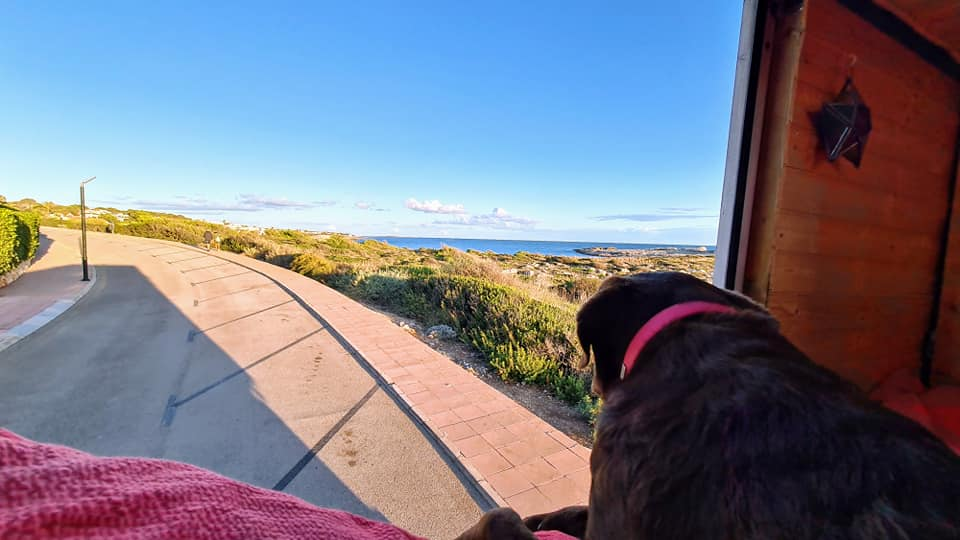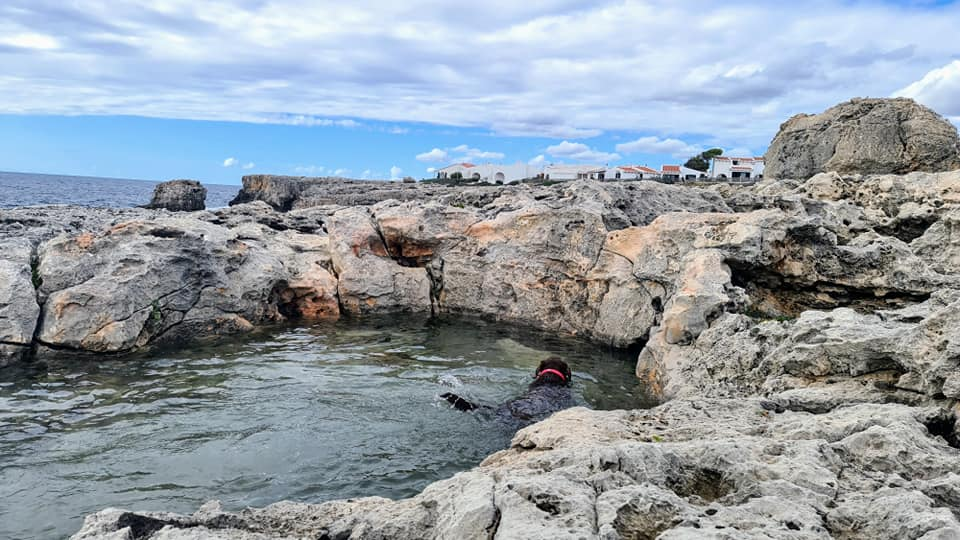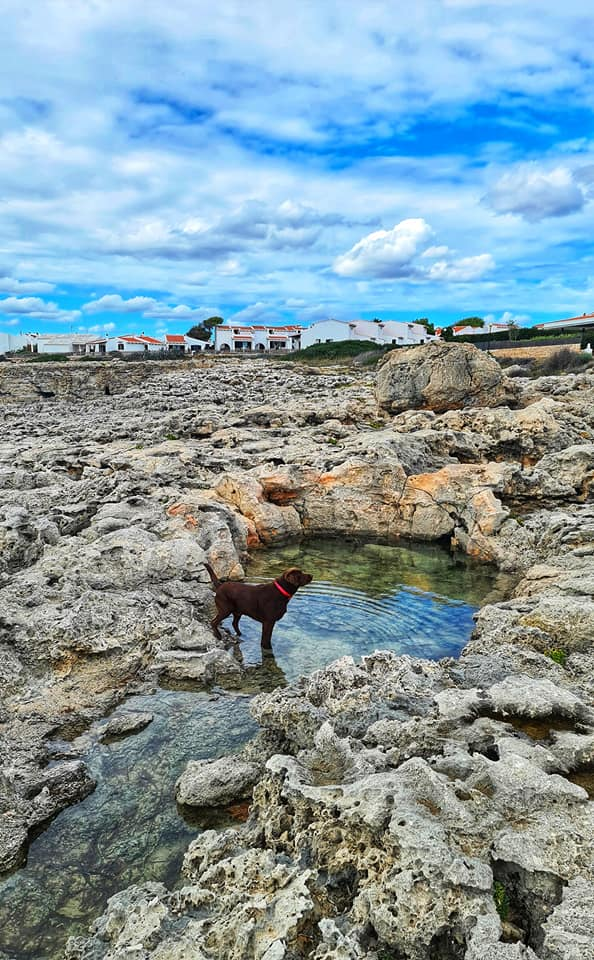 Today's view from our bedroom window and out the back in Bininbequer, Menorca. Rolo too is enjoying the views, so much so he thinks our bed is his bed even though he has his own bed which as you can see it's clearly marked! We also found a pool for him to swim in amongst the rocks . He really is a pampered travelling pooch! πΎππ«π Happy Monday everyone ππβ€οΈπβ€οΈπβ€οΈπβ€οΈπ