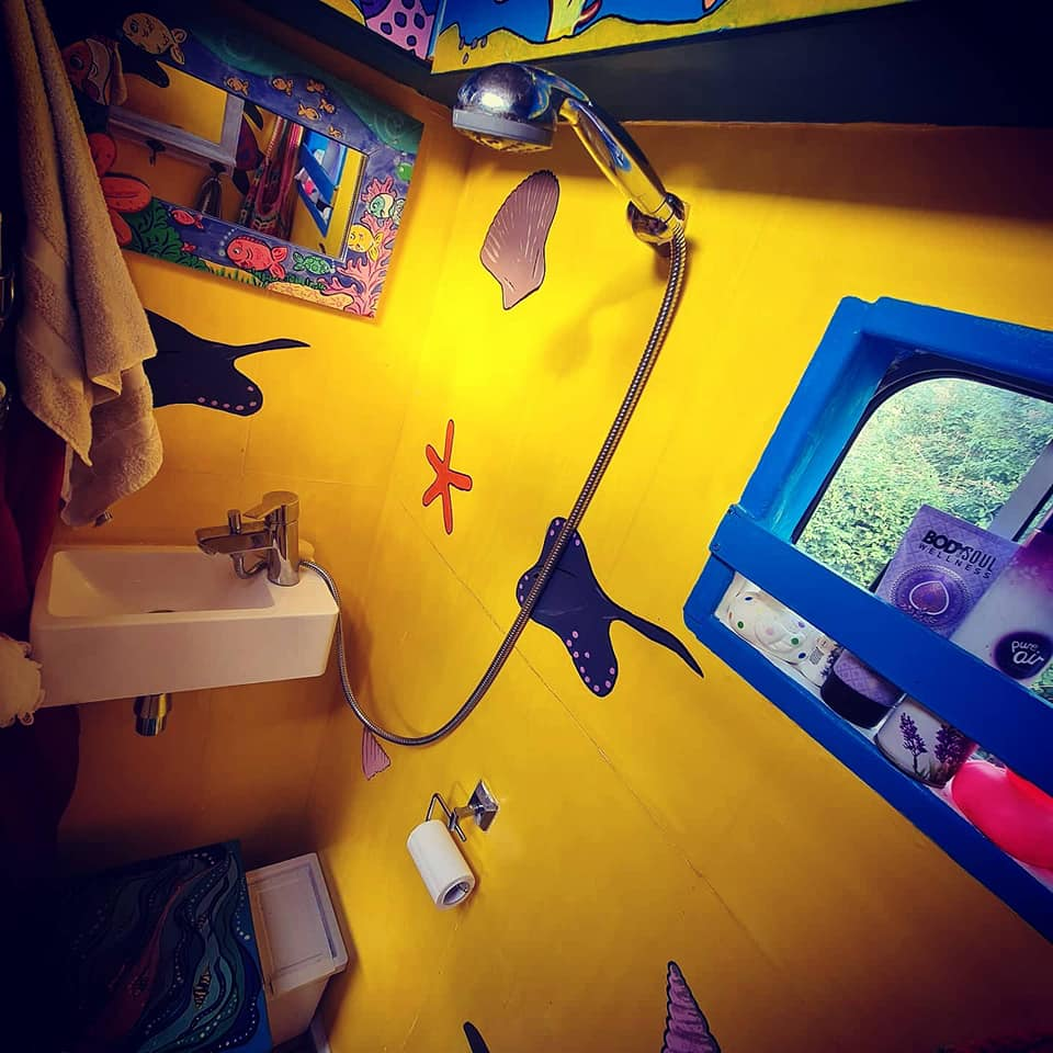 1. Our newly sea themed painted shower room and the Kildwick composting loo we got from Kildwick.com