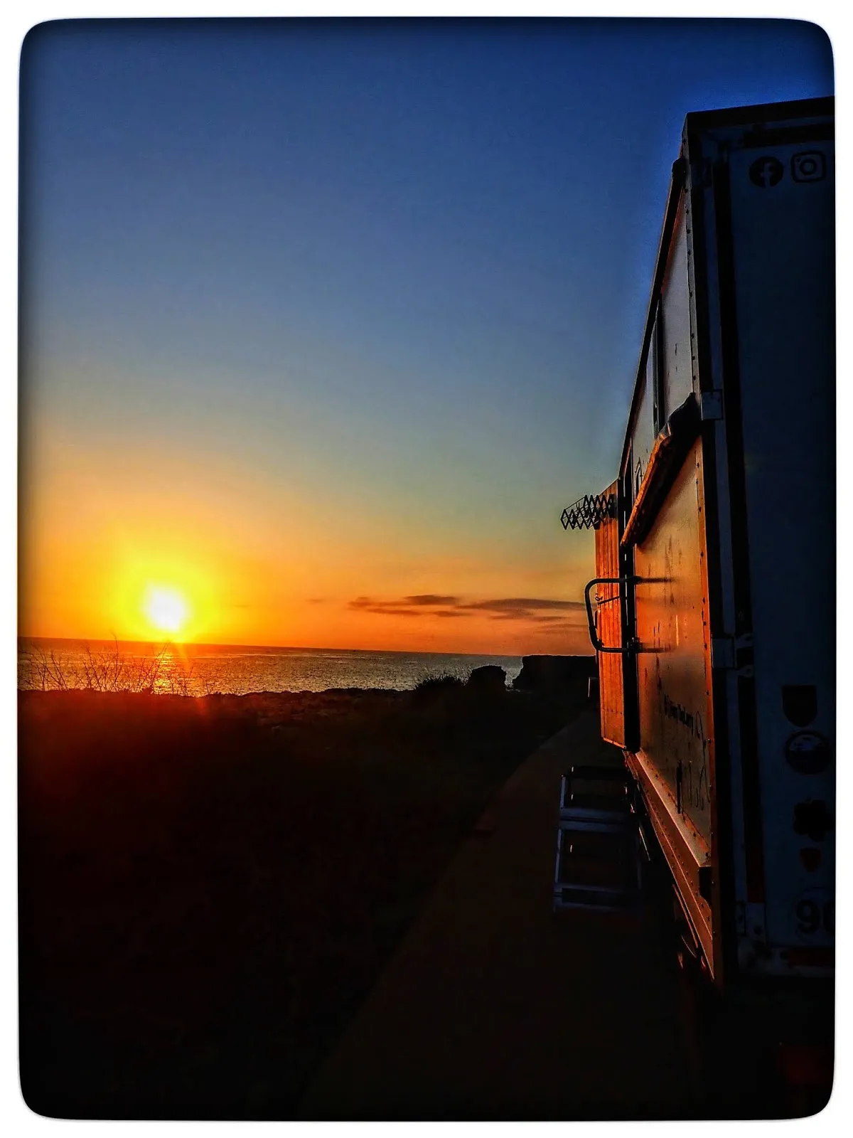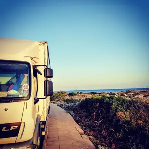 Because it wasn't the busy season anymore we ended up parking up on the coastal road behind the villas as they were closed up for the season so wouldn't be obstructing their views. We were legally parked and never left anything out and always respected the fact that there may be walkers passing by so made sure when we were in the lorry the steps were not obstructing the walkway too much.